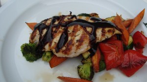 At an Italian place, it was tough finding a dairy and wheat free meal, but the chef so nicely made me some grilled chicken and vegetables with a balsamic glaze.