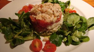 At a general American restaurant, I got a salad with crab meat, tomatoes, and avocado. One of the best salads I’ve ever had!