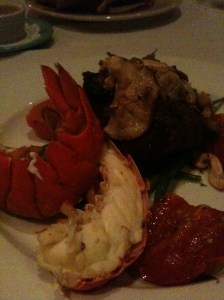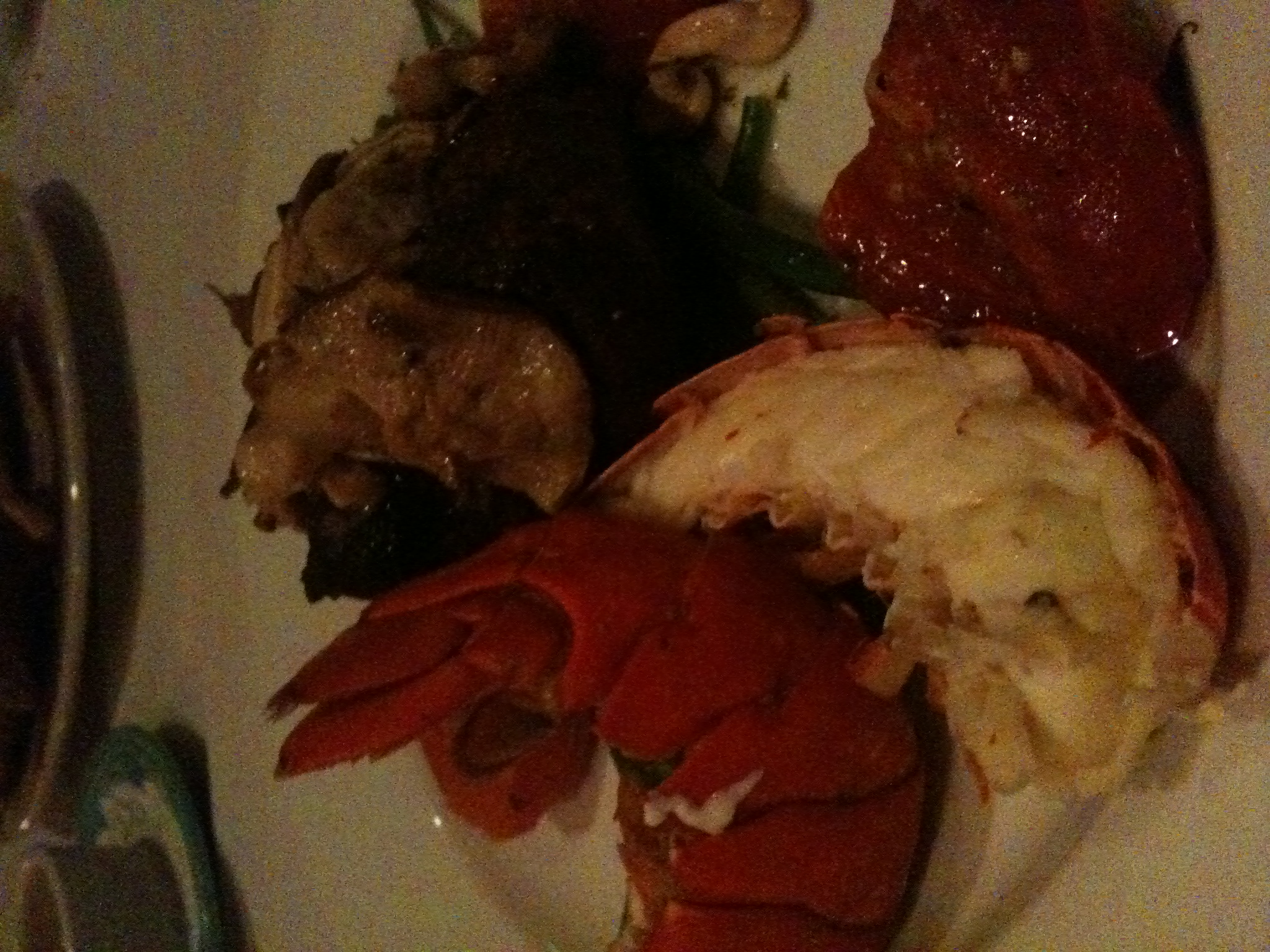 In Maine, my mom and I both love to get our lobster fill. So I got beef tenderloin and a lobster tail: