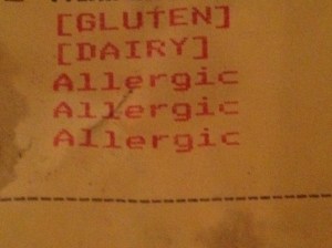 And here is my favorite part… the bottom half of the receipt was very clear on my allergies!