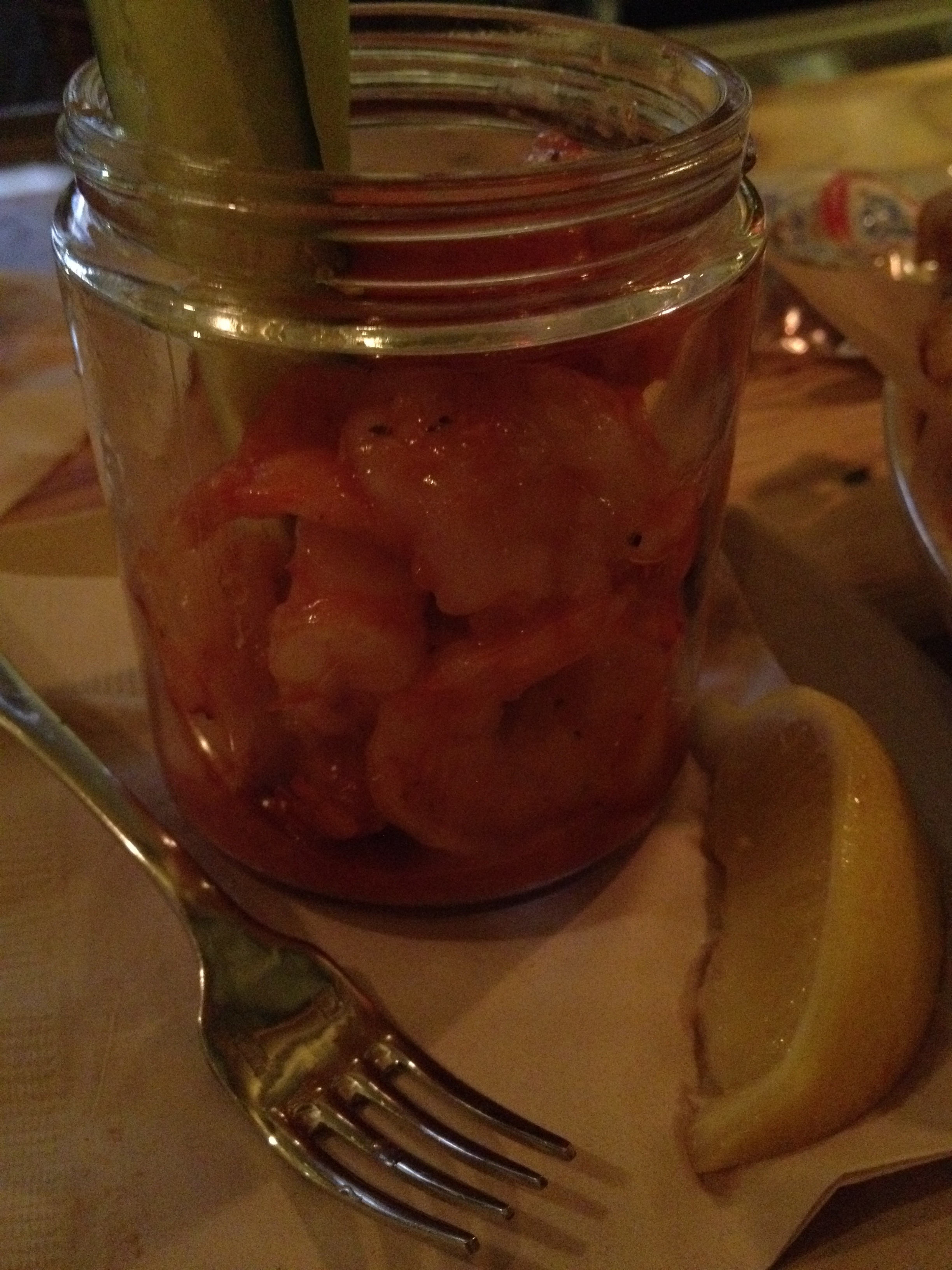 Then shrimp cocktail, with spicy cocktail sauce already mixed in: