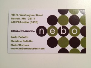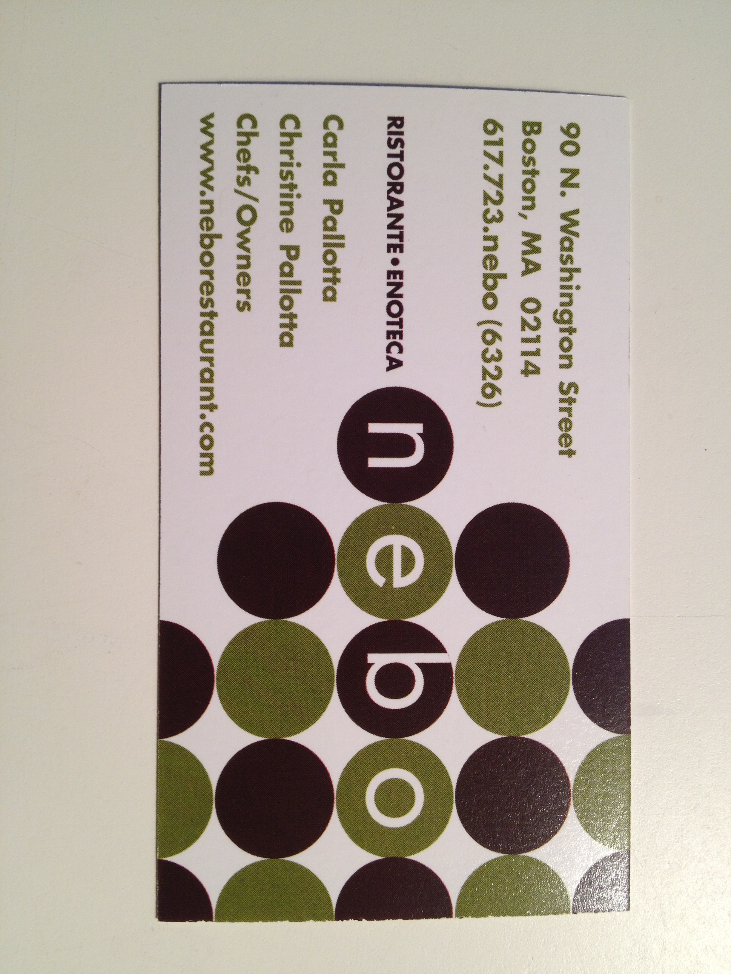 People often ask me what I miss the most about having food allergies, and my response is always “pizza and beer.” I have found wonderful gluten free beers, so I don’t even know if that is a fair answer anymore. But, pizza is much harder to find a good substitute for. Gluten free pizza dough can be very dry, and very hard to find. So, you can imagine my surprise when I found out that a North End restaurant, Nebo, has an extensive gluten free menu. Gluten free Italian? Yes, please! It is so hard to find!