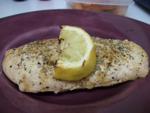 For the sauce, I emptied one container of dairy free plain yogurt into a bowl. Then I added 3 tsp. chopped garlic, a few generous shakes of dill and parsley, one eighth of a cup of white wine vinegar, the juice of one lemon, some sea salt, and grated cucumber. To grate the cucumber, I use a microplane or zester. Cut off the end of the cucumber and push the flat end back and forth across the grater, over the bowl. Grate until you have about 3 tsp of cucumber goodness. Mix all together, pour over the chicken, and serve!