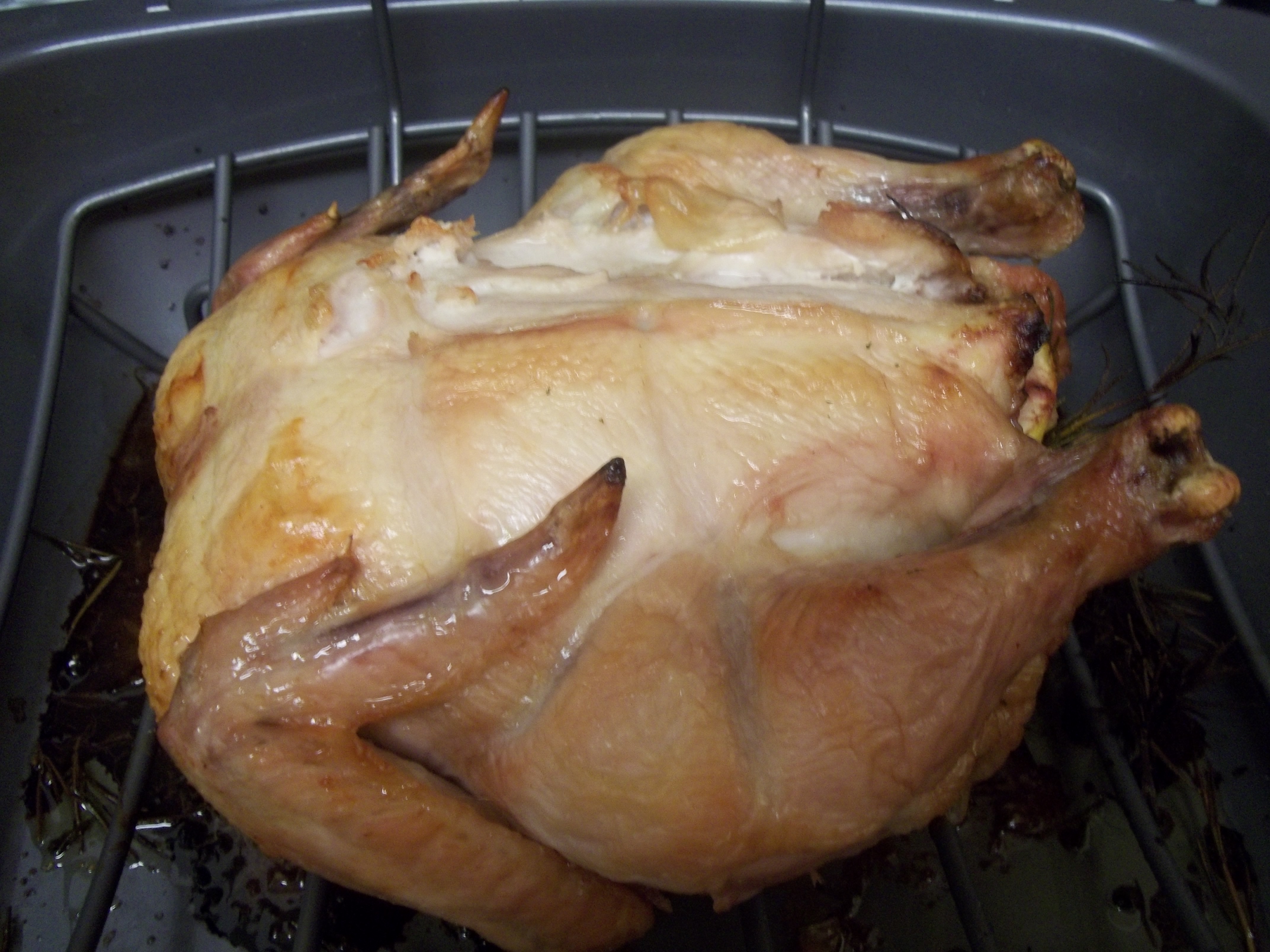 I bought a roasting chicken and poured lemon juice over it, as well as sprinkled it with salt, pepper, and celery seed. I then stuffed the inside with lemon wedges and fresh rosemary. Bake at 375 degrees for about 75-90 minutes. Home cooking at its best!