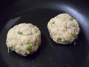 Put the crab mixture in the fridge for a half hour to firm up. (Mom has assured me this is a key step)