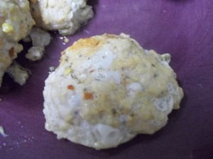 Here’s the fun part. I made meatballs out of the chicken mixture by rolling them into balls and sauteing them. You can also just as easily make the mixture into chicken patties and bake them, or even make it into a meatloaf.