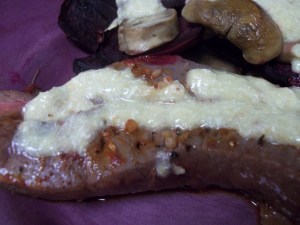 Pour the horseradish sauce on the meat and some on your veggies (here I have beets and mushrooms) for an extra kick!