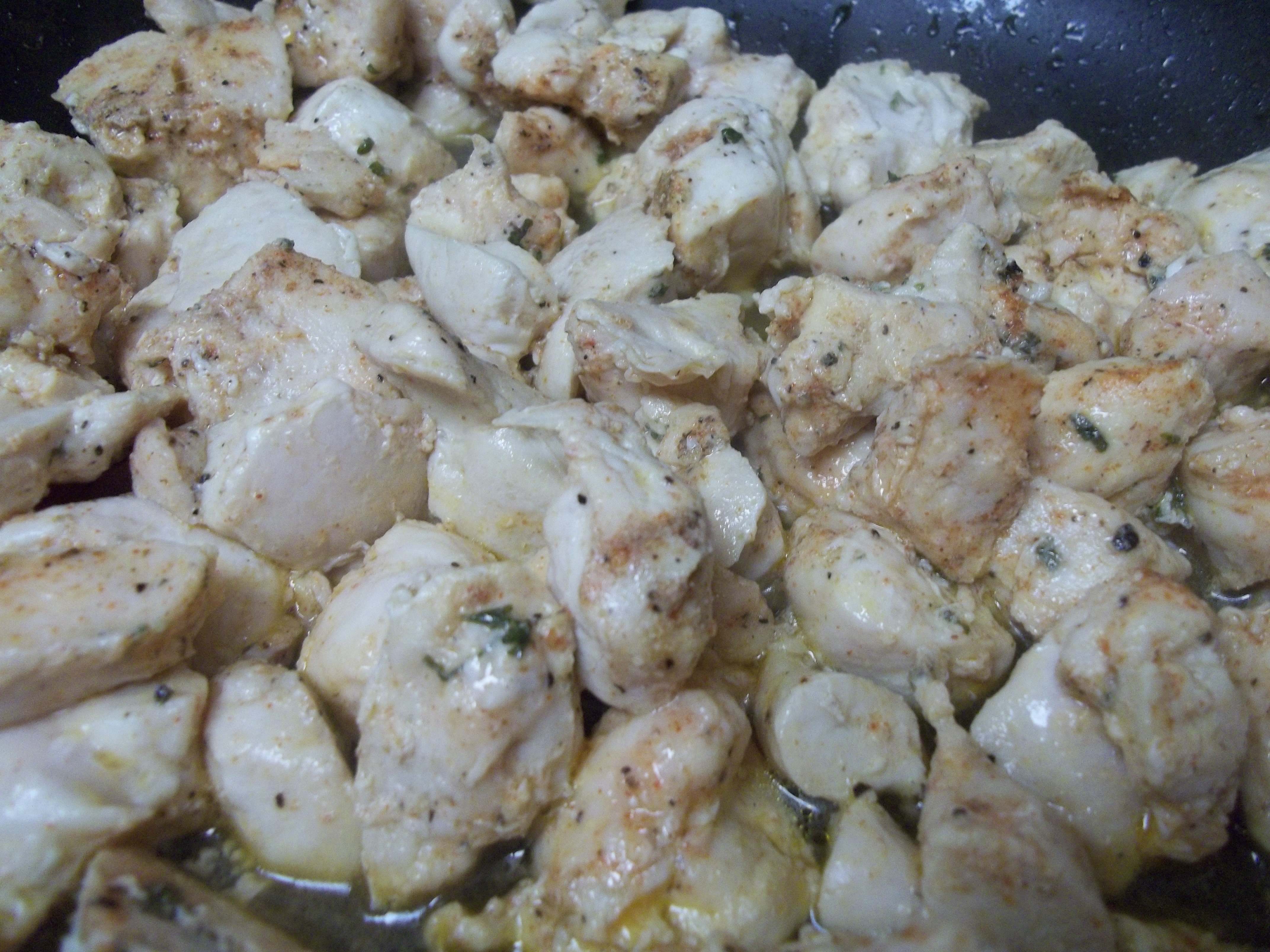 - In a shallow saute pan with olive oil, saute the chicken tender pieces until cooked through. While they are cooking, add 1 tbsp. Slap Ya Mama seasoning, 1 tsp. cumin, 1 tsp. smoked paprika, and 1 tsp. parsley and stir frequently.