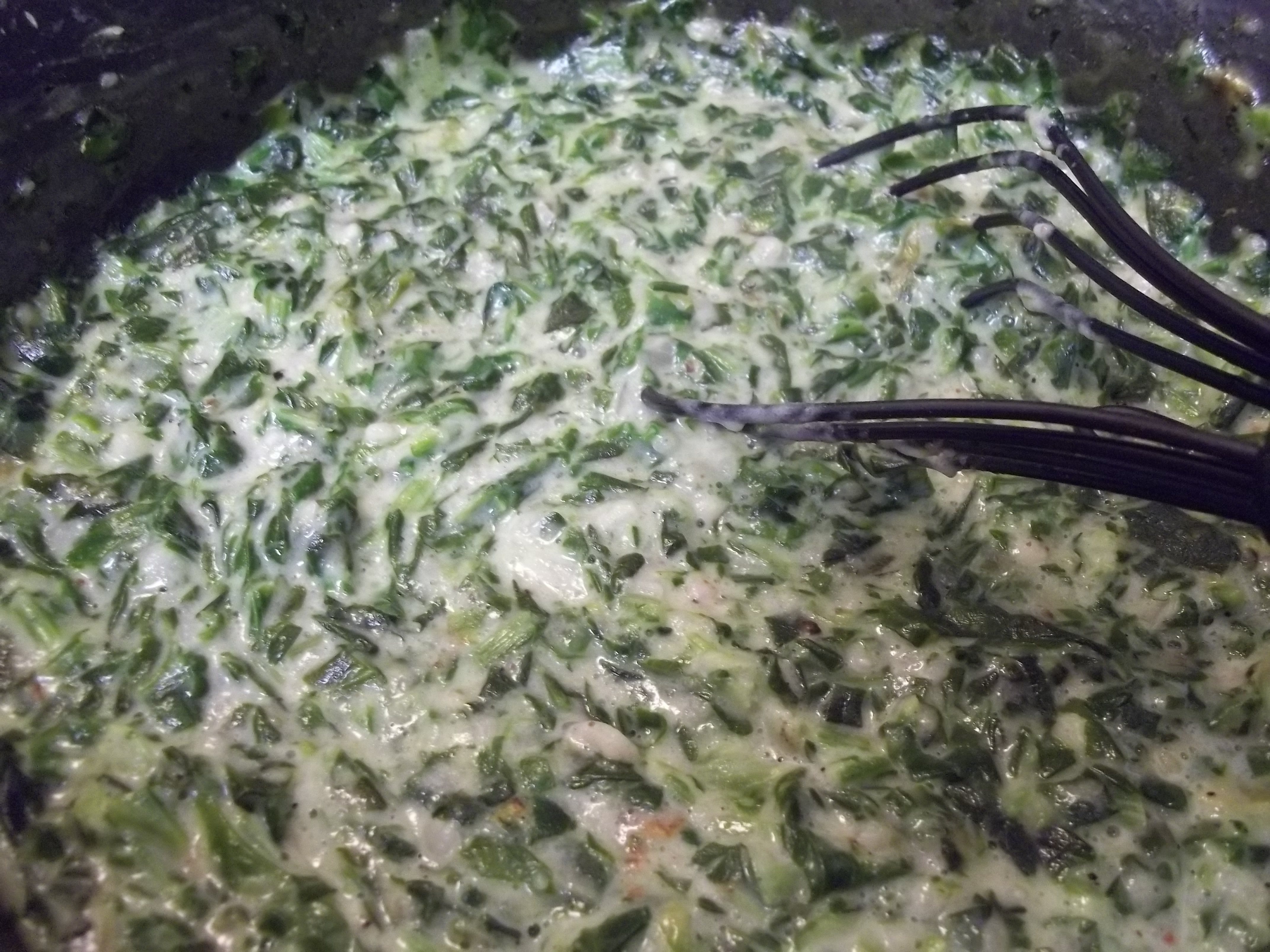 4. Cover and let it continue to cook, stirring every few minutes until the spinach is creamy and hot.