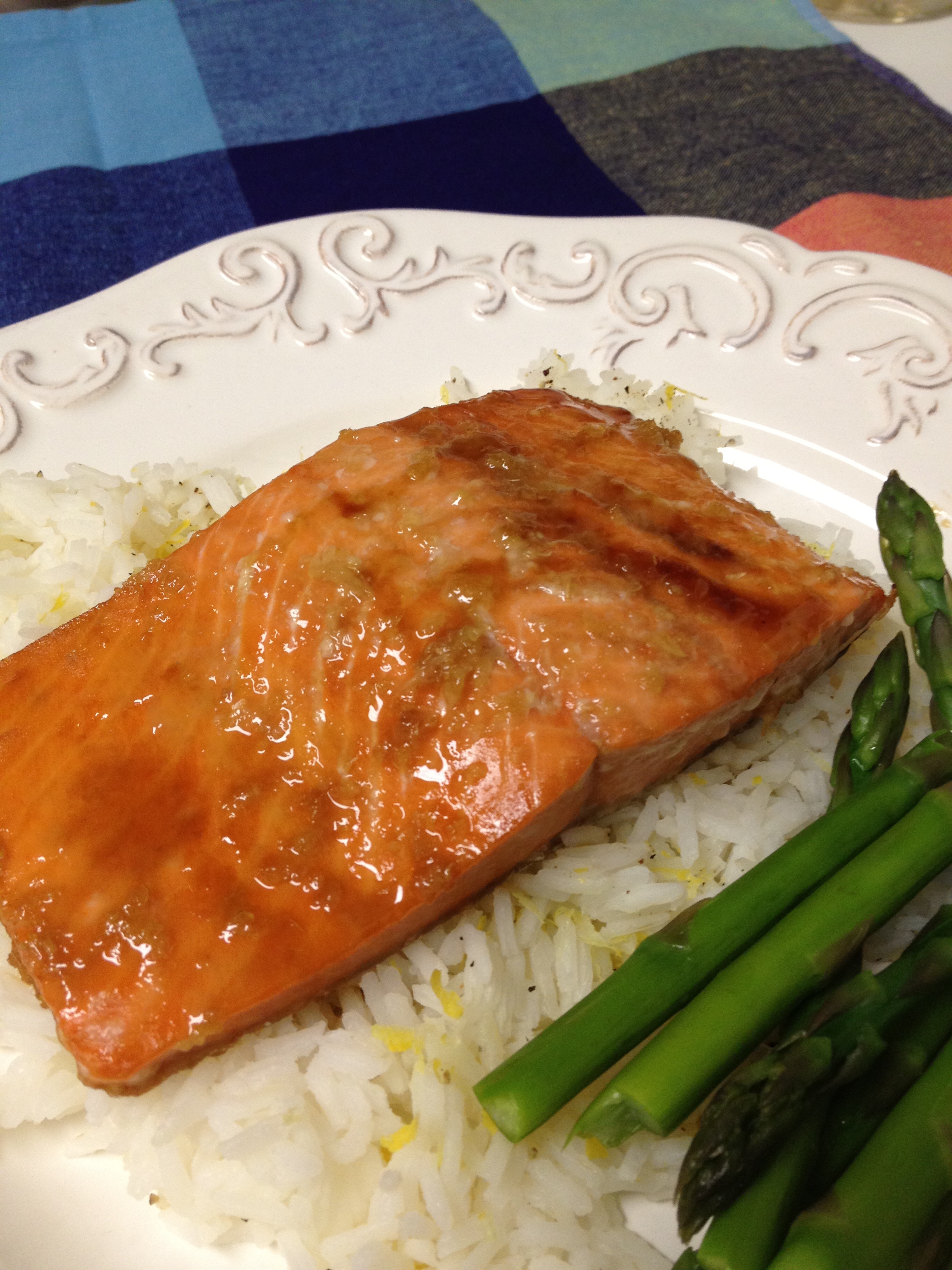 Sweet Salmon Over Lemon Rice