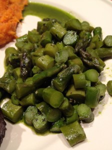 - While the quinoa is cooking, saute the mushrooms and asparagus in the olive oil and salt and pepper. Saute them on medium heat until tender. Add one quarter cup water if needed.