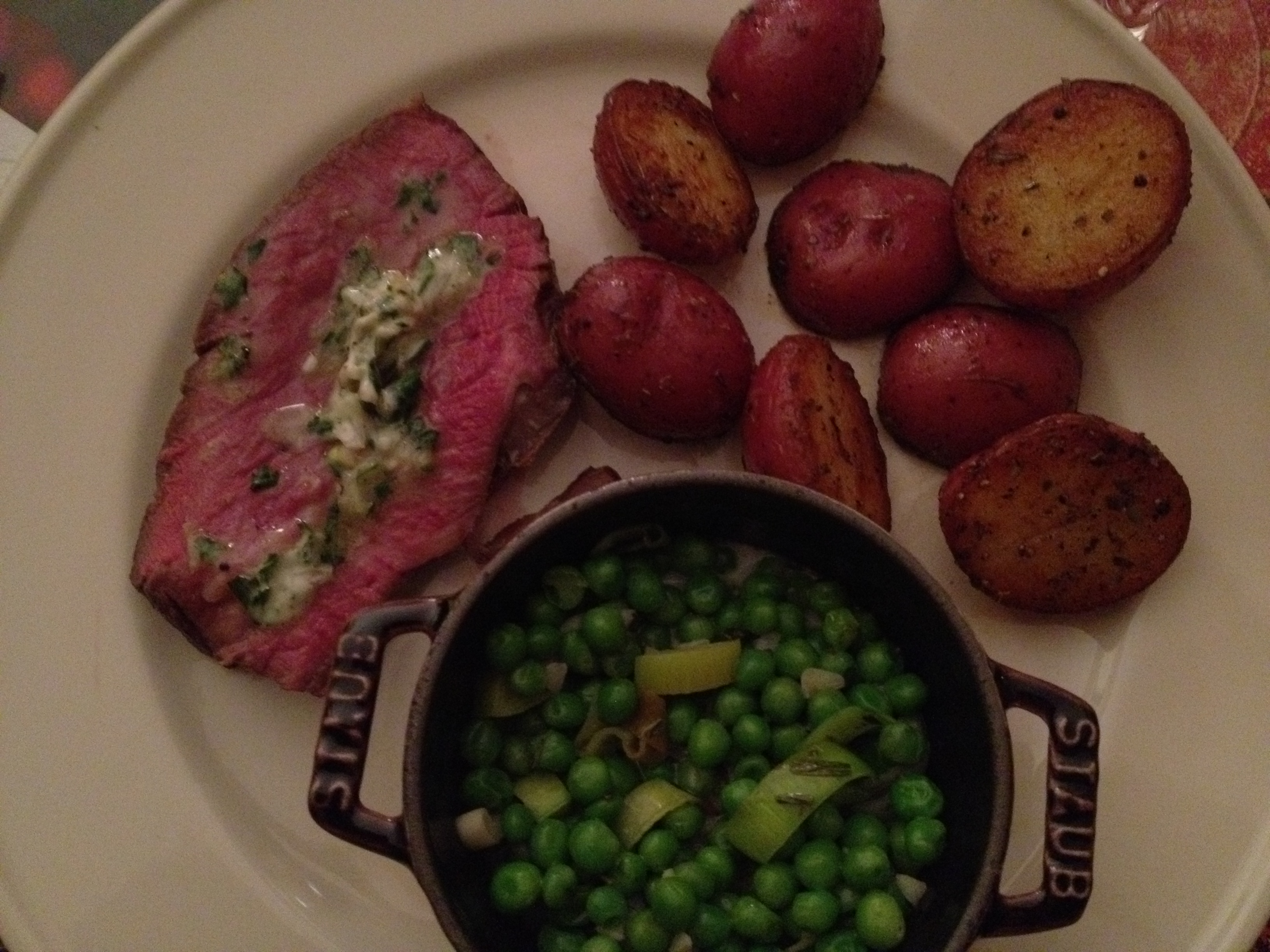 - While the veggies and quinoa are cooking, saute the salmon. Put the butter in a saute pan, and melt over medium heat. Place the salmon steaks skin side up. Add the dill and lemon juice.