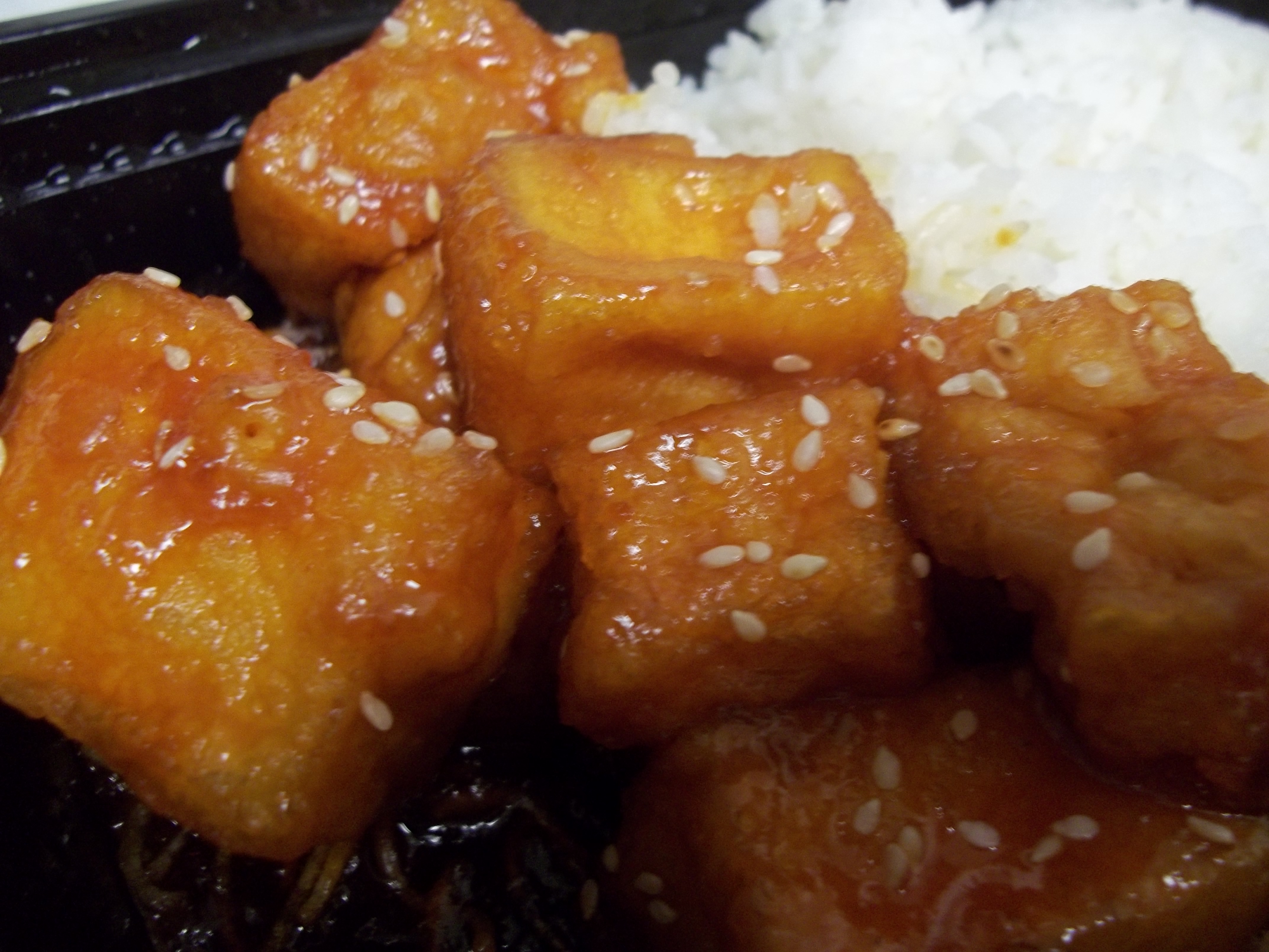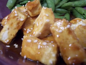 - In a large sauté pan, add the tofu and 4 tbsp. of your favorite BBQ sauce. Saute the tofu over medium heat in the BBQ sauce until it starts to get crispy.